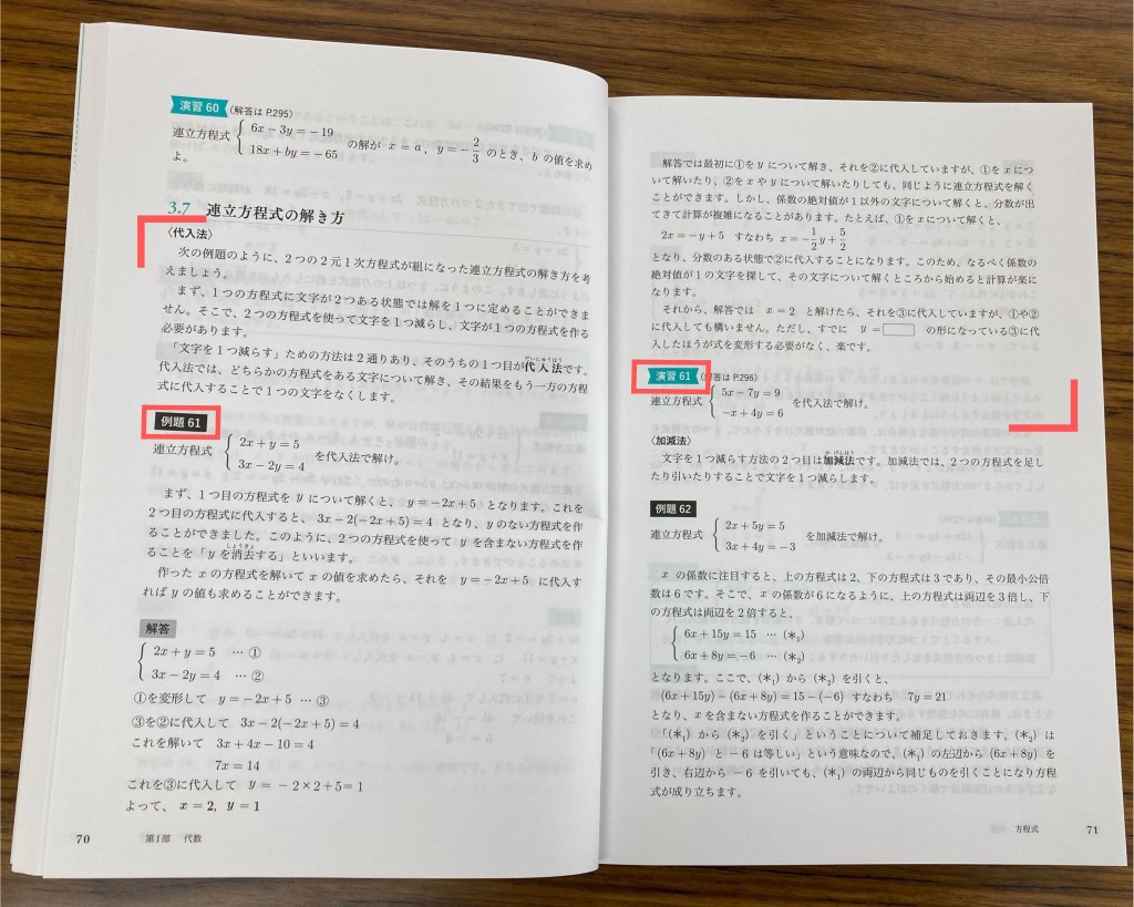1つ1つの学習内容が、説明 → 例題 → 演習 の3ステップの形式で構成されています。